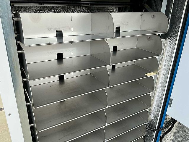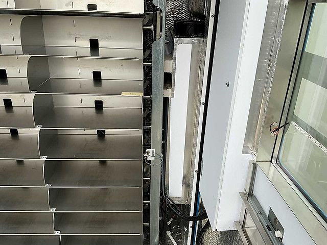 • Capaciteit: Uitgerust met 40 schuiven, aangestuurd door een betrouwbaar mechanisch kettingsysteem, wat zorgt voor een soepele en stabiele productuitgave.
